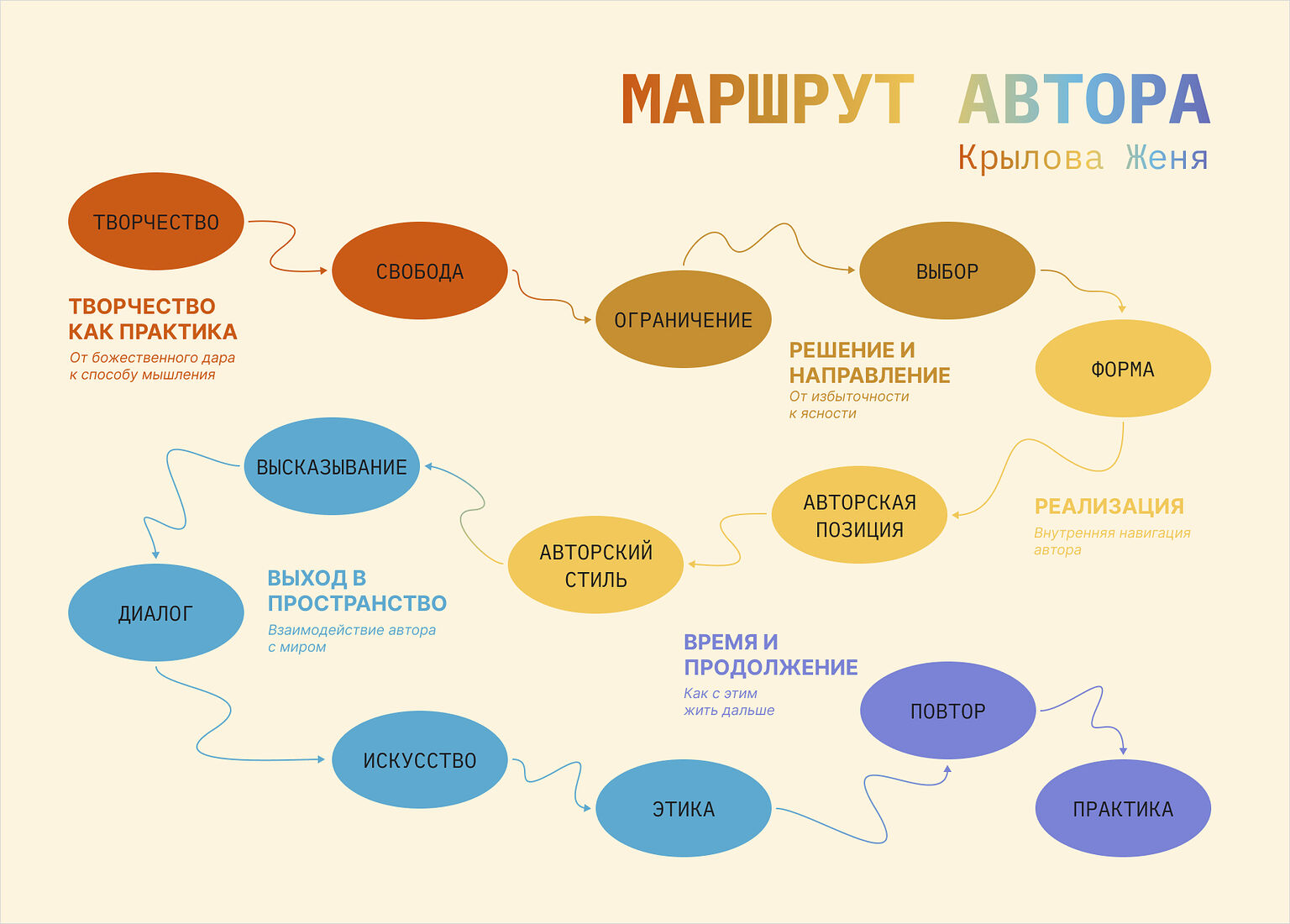В итоге я добилась того, чего хотела, и у меня получился понятный и структурированный сборник. Я назвала его «Авторский маршрут. От хаоса к высказыванию».